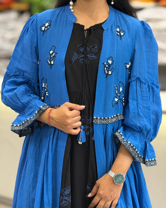 Black One Piece With Royal Blue Jacket Dress for Girls