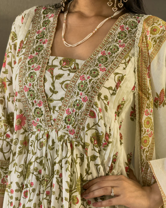 Teal Blue Anarkali Kurta Pant with Dupatta Set