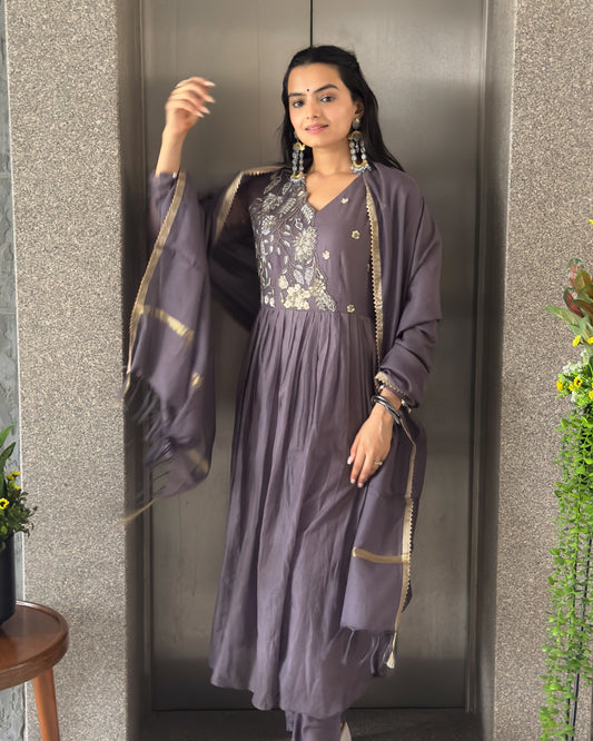 Lavender Up & Down A-Line Kurta Palazzo Set for Women
