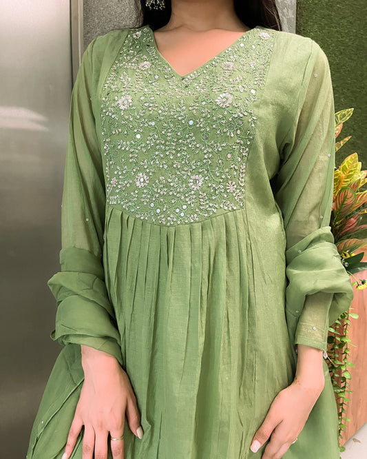 Mehndi A-Line Kurta Pant Set With Dupatta