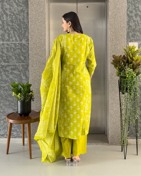Parrot Straight Kurta Palazzo Set with Dupatta
