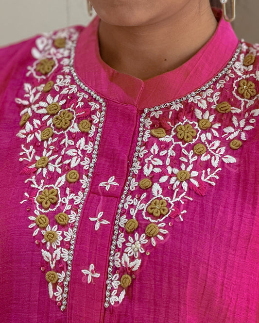 Rani Pink Mal Chanderi Cotton Co Ord Set