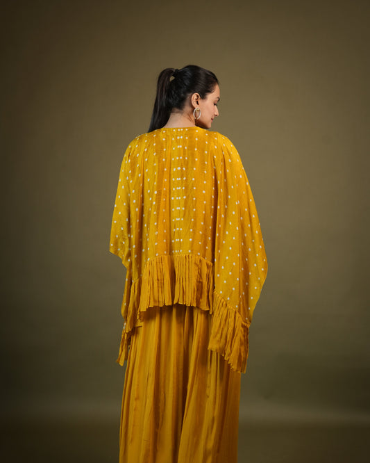 Yellow and Pink A-Line Kurta pant with Dupatta Set