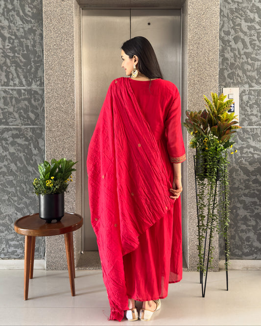 Round Angrakha Style Kurta Pant Set with Dupatta