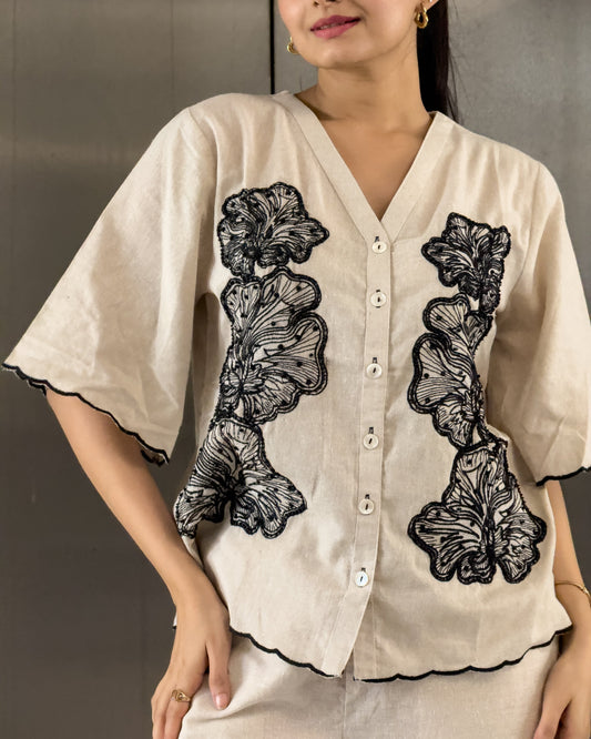 Off White Cotton Co ord Set Women