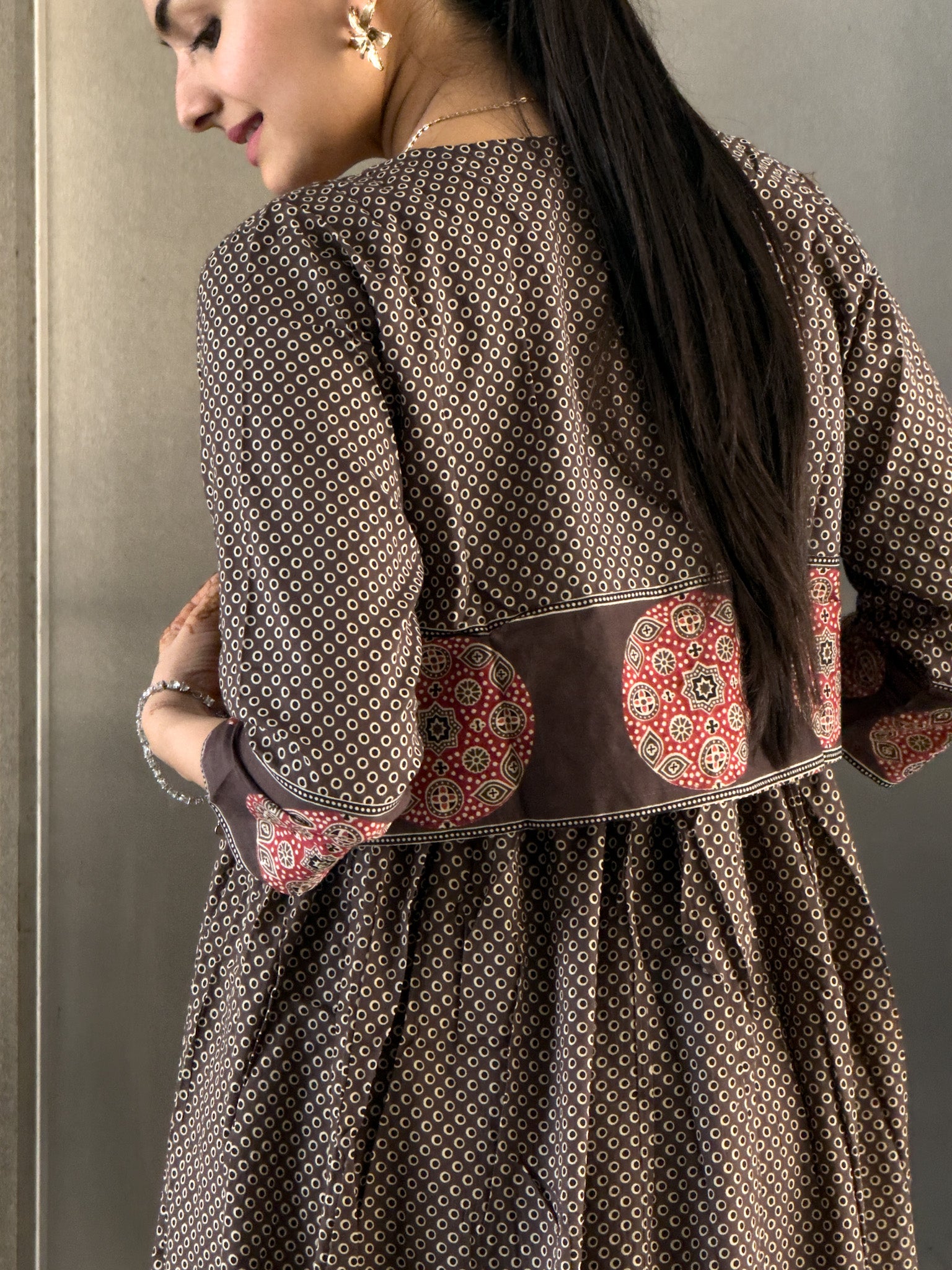 Coffee Cotton Gown With Jacket Gown For Girls