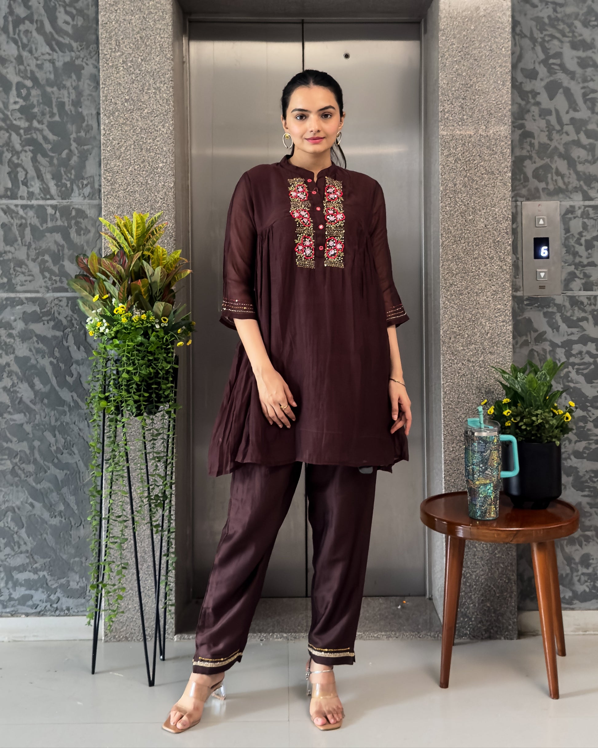 Coffee & Teal Blue Mal Chanderi Co ord Set Women