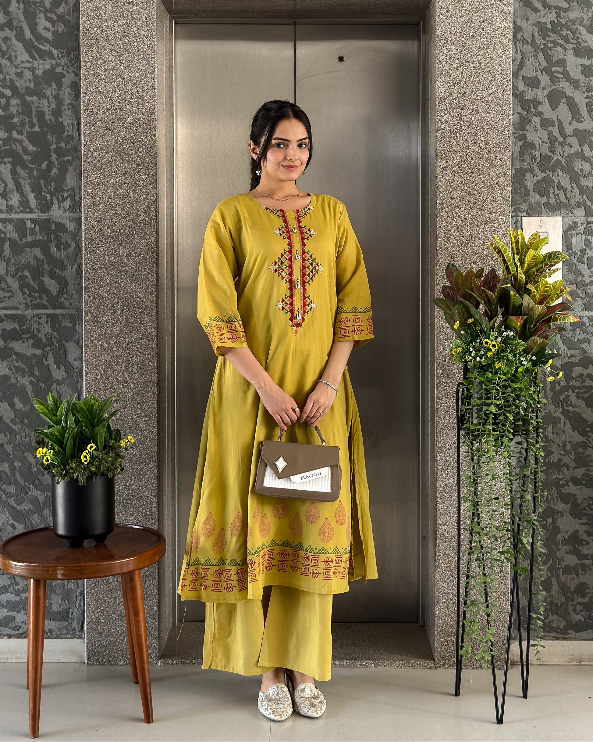 Pack Contains: 1 A-line Kurta, 1 Palazzo