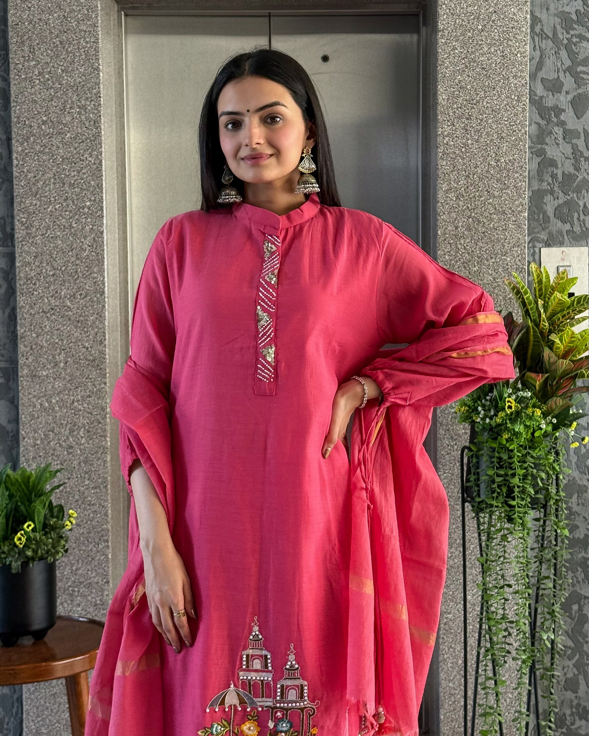 Pair Type: A line Kurta, Pant Set with Dupatta