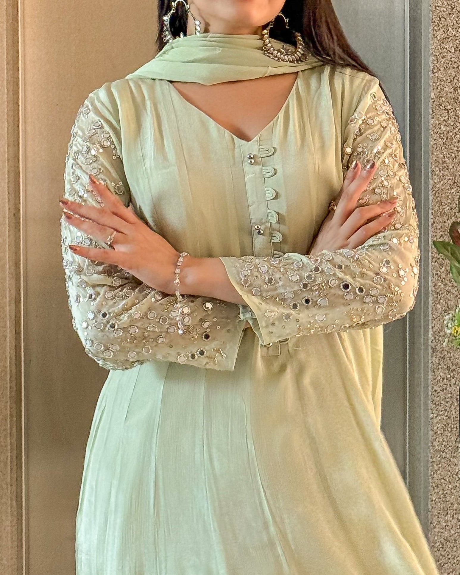 Pista Anarkali Kurta Pant with Dupatta Set