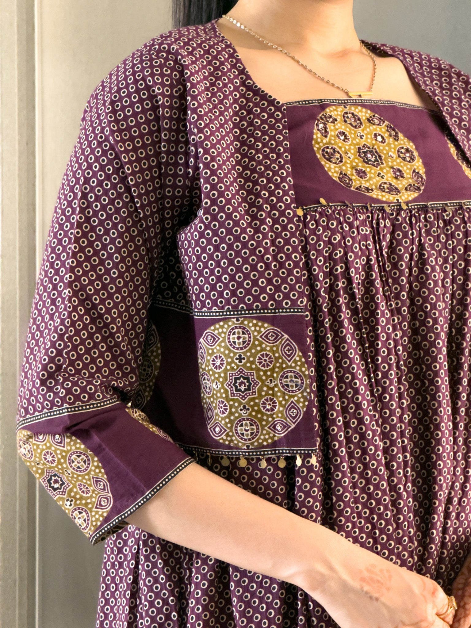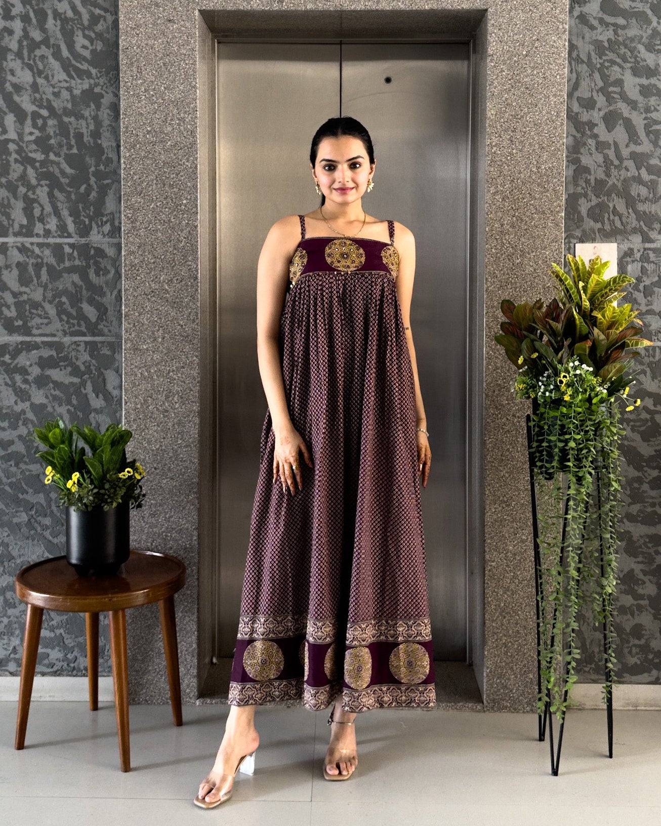 Wine Cotton Gown With Jacket Gown For Girls