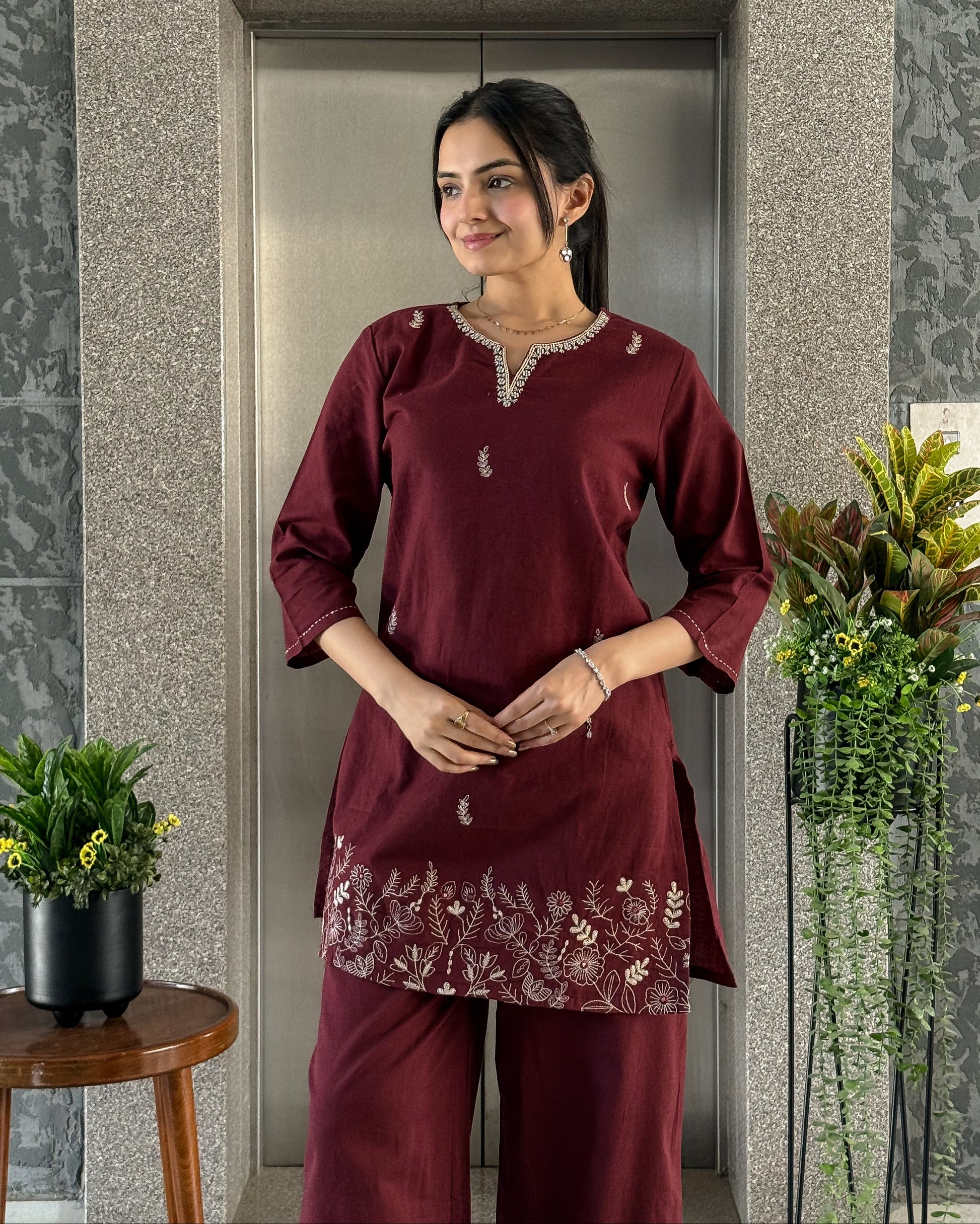 Wine Ethnic Co ord Set Women