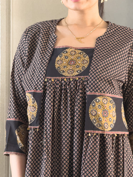 Black Angrakha Style Kurta Pant Set with Dupatta